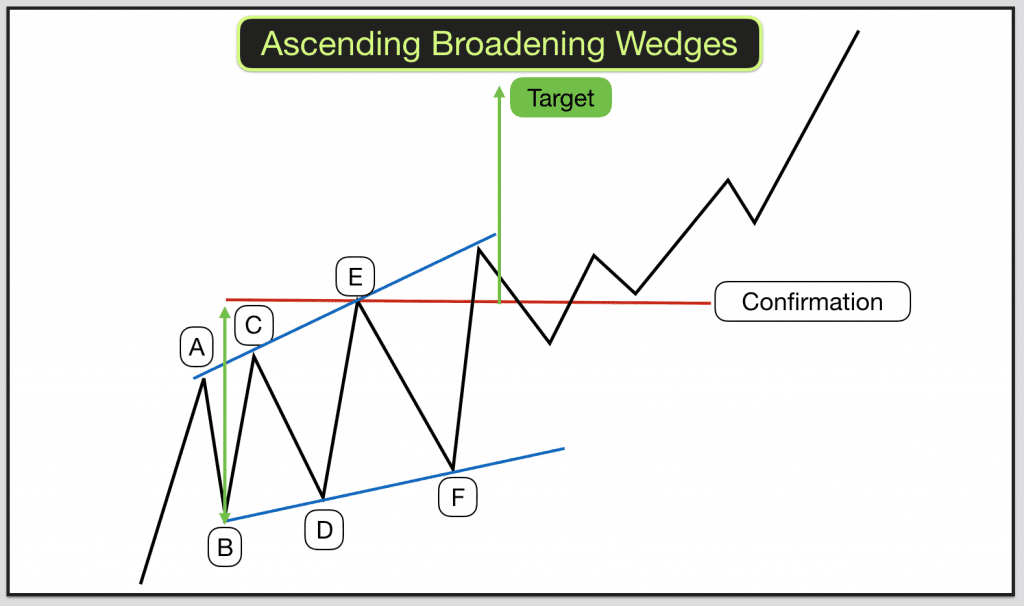 Broadening Wedges are one of a series of Chart Patterns in Trading: